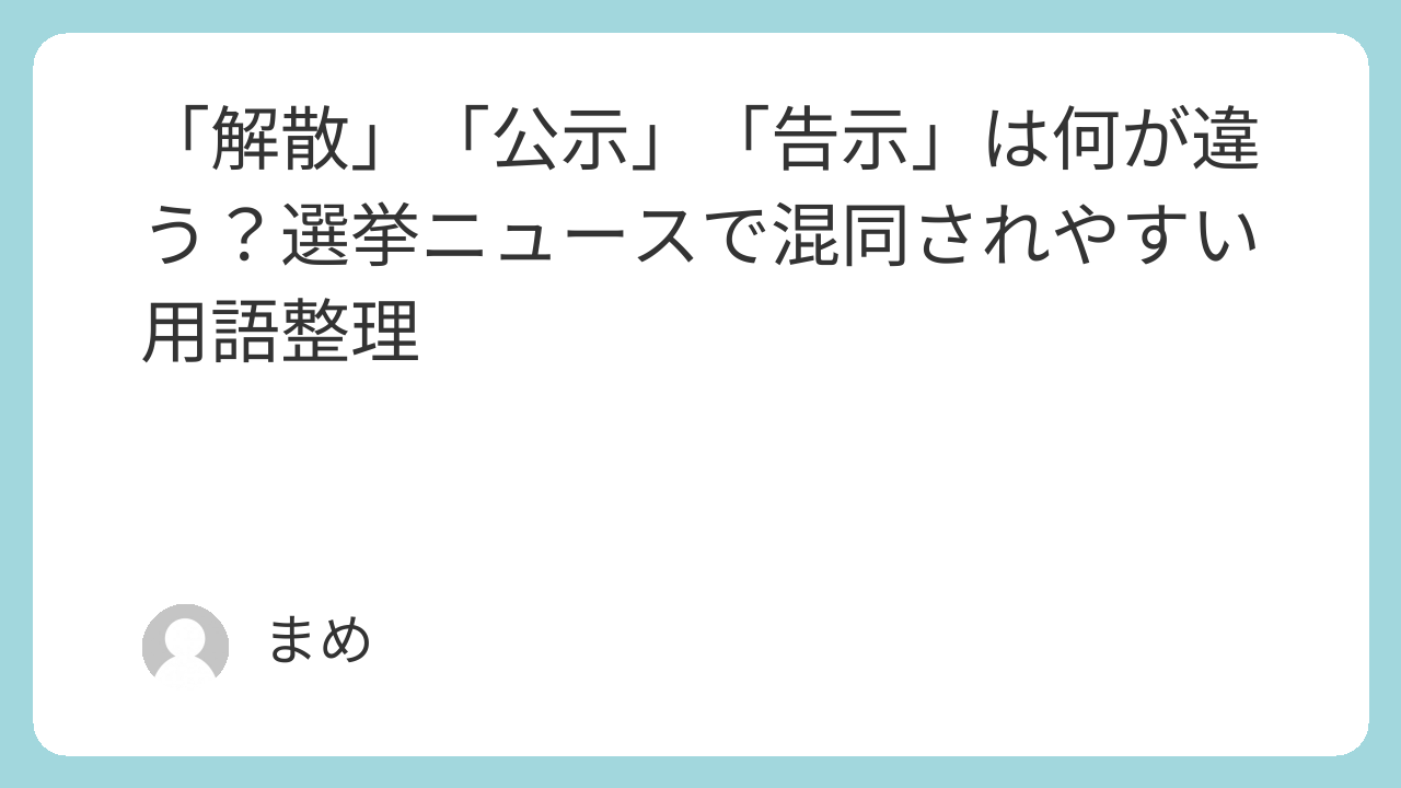 「解散」「公示」「告示」それぞれが何を指す言葉なのかを、