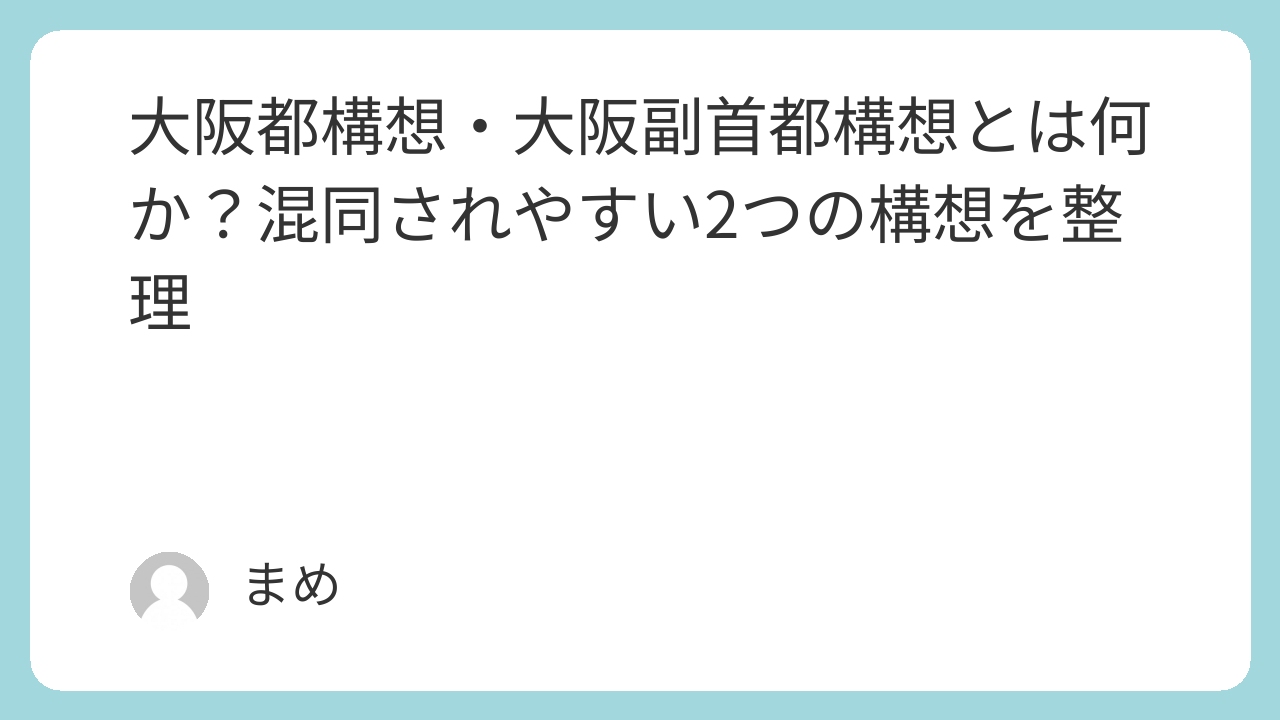 - 大阪都構想:大阪市を廃止し、特別区に再編する制度改革