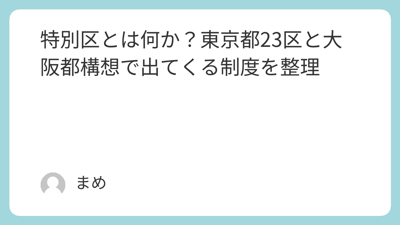 特別区は「市に近い役割を持つが、完全な市ではない自治体」です。